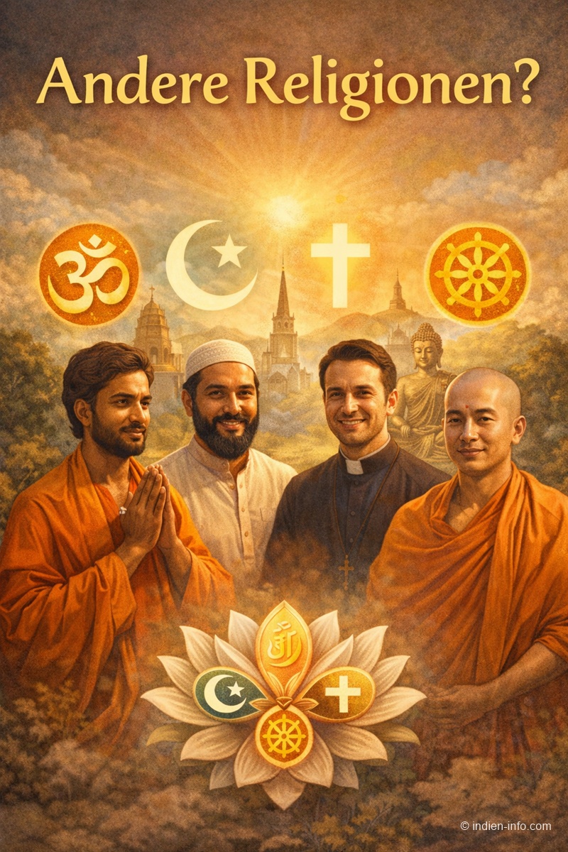 Im Hinduismus gilt: Wahrheit kann viele Ausdrucksformen haben. Andere Religionen werden nicht als falsch gesehen, sondern als andere Wege, die für andere Menschen passen können. Es gibt keinen Missionsauftrag und keinen Anspruch auf Alleingültigkeit.