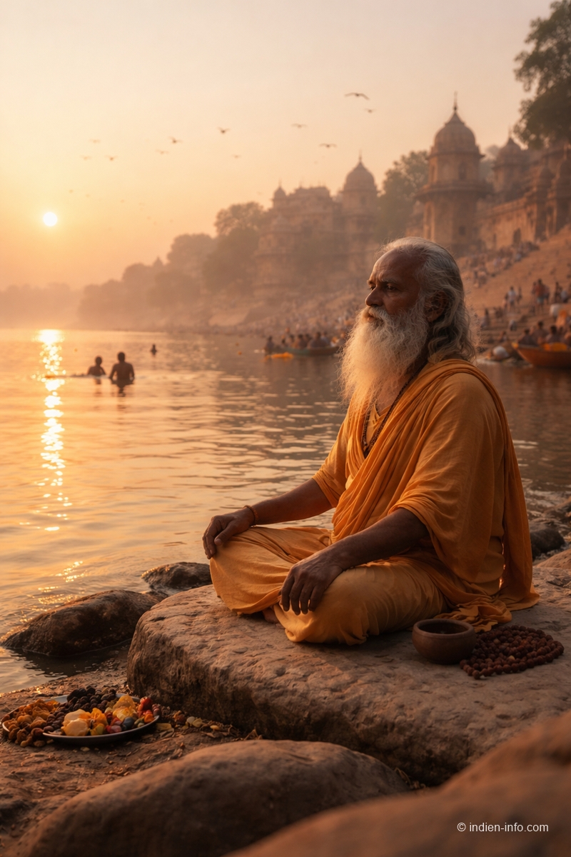 Am Ufer des Ganges, wo Wasser, Zeit und Geschichten ineinanderfließen, sitzt ein alter Weiser und tut scheinbar nichts. Während Pilger baden und Gedanken kommen und gehen, geschieht hier etwas Unauffälliges, aber Wesentliches. Diese Geschichte führt an einen Ort, an dem Antworten nicht erklärt, sondern erfahren werden. Der Ganges ist dabei mehr als ein Fluss – er ist Spiegel, Lehrer und stiller Begleiter. Es geht nicht um Rituale oder Regeln, sondern um das, was bleibt, wenn man für einen Moment nichts festhalten will. Eine kleine Begegnung, einfach erzählt, mit einem leichten Lächeln im Hintergrund. Ohne Belehrung, ohne Aufwand. Nur ein kurzer Halt am Ufer.