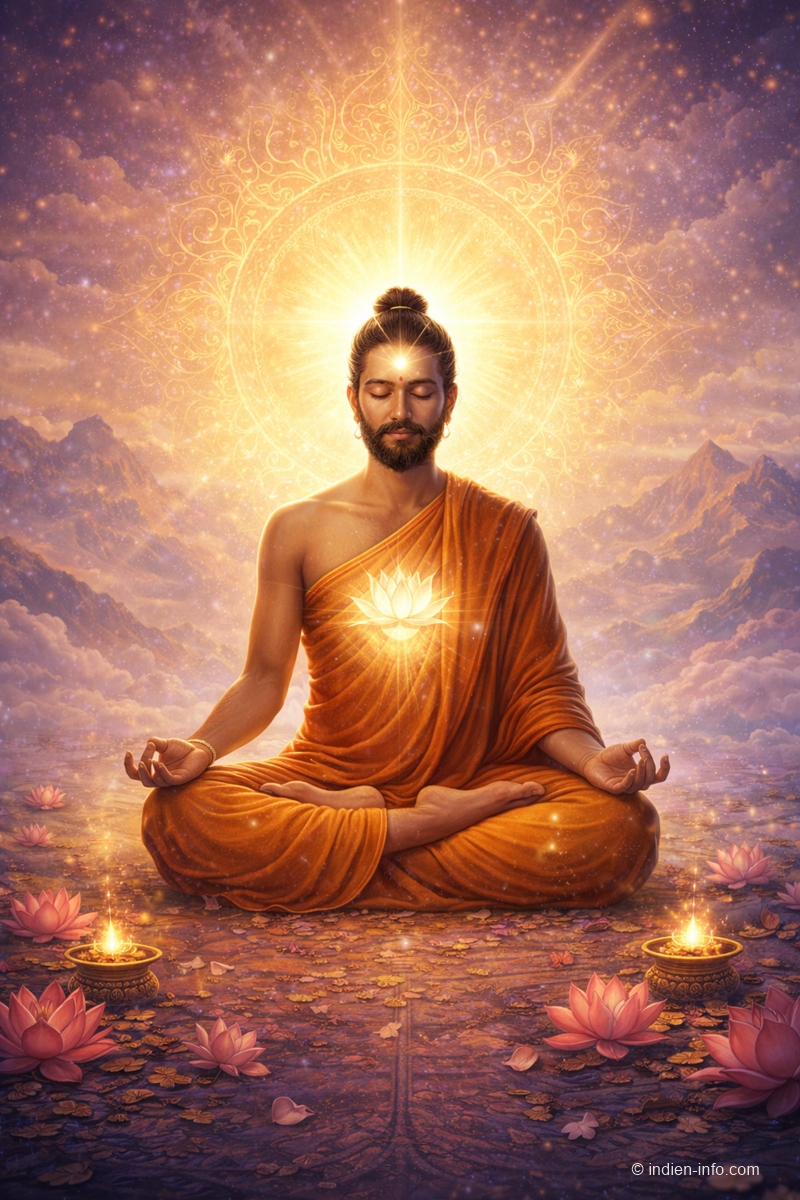 Im indischen Denken bedeutet Erleuchtung das Erkennen der eigenen wahren Natur. Nicht etwas Neues zu bekommen, sondern etwas zu durchschauen, was immer schon da war.