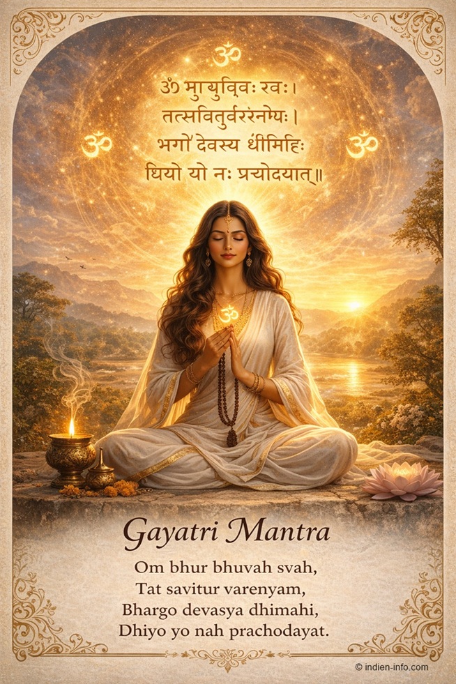 Das Gayatri Mantra ist eines der ältesten und bedeutendsten Mantras des Hinduismus. Es richtet den Geist auf Klarheit, Erkenntnis und inneres Licht aus. Es wird nicht gebeten, sondern meditiert.