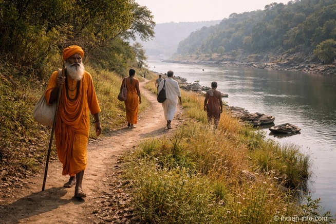 Die Narmada Parikrama ist eine der ältesten und konsequentesten Pilgerreisen Indiens. Sie besteht aus der vollständigen Umrundung des Flusses Narmada, der als lebendige Göttin verehrt wird. Ziel ist nicht ein einzelner Tempel, sondern der gesamte Flusslauf. Die Yatra steht für Hingabe, Ausdauer und radikale Einfachheit – man folgt dem Fluss, Schritt für Schritt.