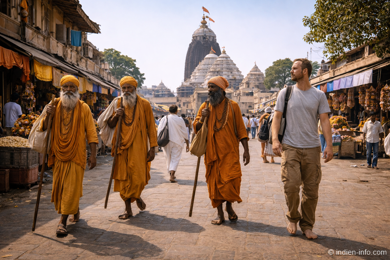 Puri-Stadt.Die Pilgerreise beginnt traditionell im Stadtgebiet und an der Küste.