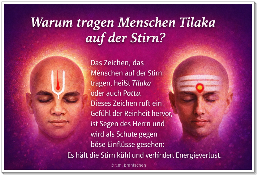 Tilak oder Tilaka = ein Zeichen, das Menschen aus religiösen Zwecken auf der Stirn oder anderen Stellen ihres Körpers tragen.