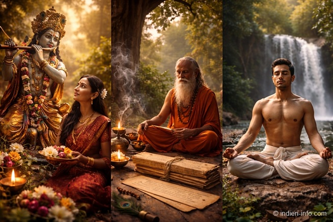 Der Hinduismus kennt keinen einzigen vorgeschriebenen Weg, sondern viele bewährte Pfade der spirituellen Praxis. Entscheidend ist nicht, wie man geht, sondern dass man geht – passend zur eigenen Natur, Neigung und Lebenssituation.