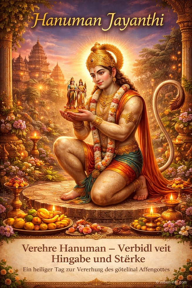 erinnert an den Geburtstag Hanumans, des Sinnbilds für Hingabe, Stärke und selbstlosen Dienst. Er gilt als vollkommener Verehrer Ramas und als Ideal eines Karma-Yogis, der handelt, ohne etwas für sich zu erwarten. Seine Kraft entspringt nicht Muskelstärke allein, sondern unerschütterlicher Liebe und innerer Disziplin. Hanuman zeigt, dass wahre Größe in Demut liegt. Seine Geschichten lehren Mut, Treue und Vertrauen in das Göttliche. An diesem Tag steht nicht Heldentum im Vordergrund, sondern reine Hingabe.