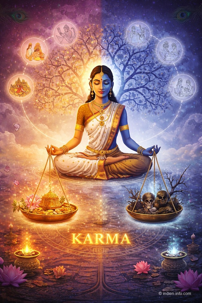 Einfach erklärt: Karma bedeutet „Handlung“ und „Wirkung“. Jede Handlung – gedanklich, sprachlich oder körperlich – hat eine Folge. Diese Folge entsteht nicht durch Belohnung oder Bestrafung, sondern durch Ursache und Wirkung.
